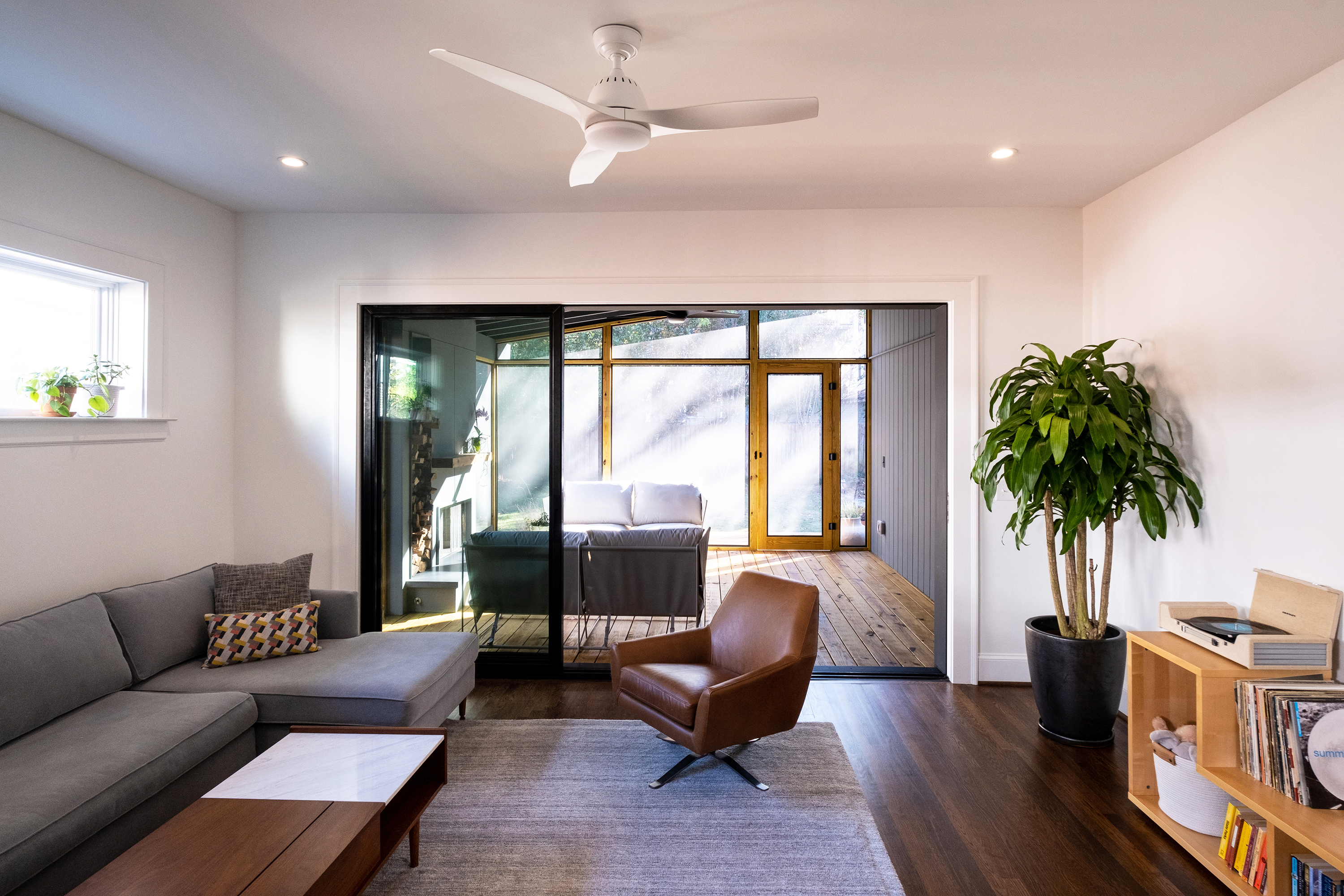 You will do a double take when you are trick-or-treating amidst neighbors on the ‘Pride of Candler Park’ next year. This slate-colored beauty of a renovation/addition slipped right in amongst the other homes while the city was locked down in the second quarter of 2020, respecting its historical context but leaning ever-so-slightly to the present day. This home is like the mythological double mullet: a party in the front and a party in the back. LA™ made extra sure the house would be a showcase for their love of original context and clean details.